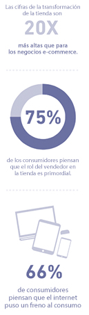 datos2Aunque los consumidores prefieran hacer su compra online con más frecuencia que antes, la tienda es irremplazable por su habilidad de proveer una tasa mucho mayor de conversión de ventas, es la configuración clave para estimular una experiencia de usuario, además que los compradores están en la capacidad de manejar los productos a primera mano en un ambiente visual y con sonido de fondo.